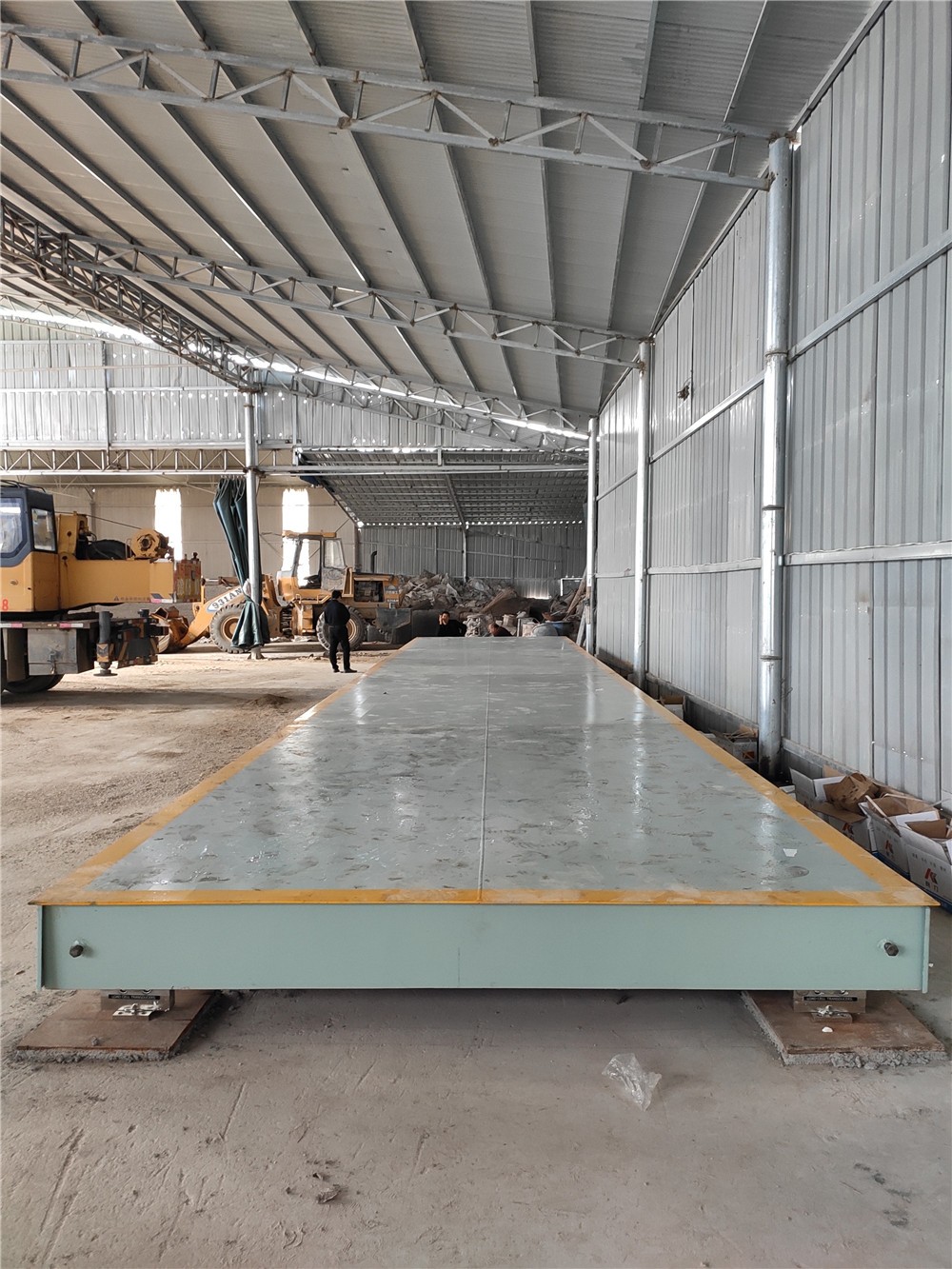 采購背景:南陽南召辛興建材有限公司主要從事建筑建材、沙石料的生產(chǎn)和銷售,廠區(qū)出貨量較大,需要采購一臺大型汽車衡。經(jīng)過現(xiàn)場考察,訂購了中原恒瑞地磅廠3x16m定額120噸電子地磅。