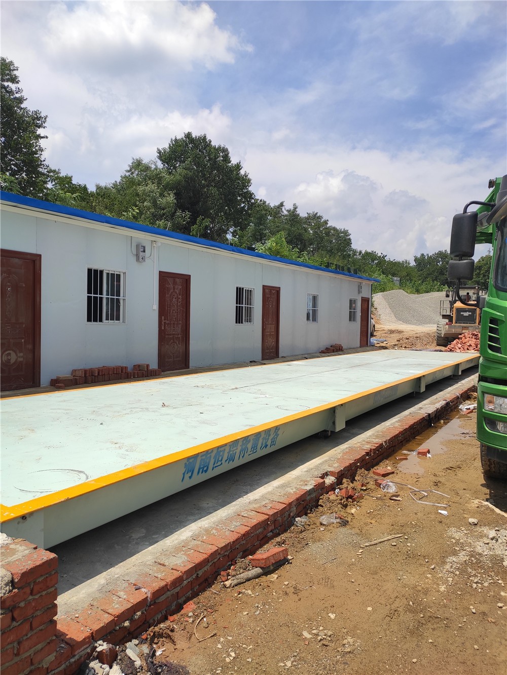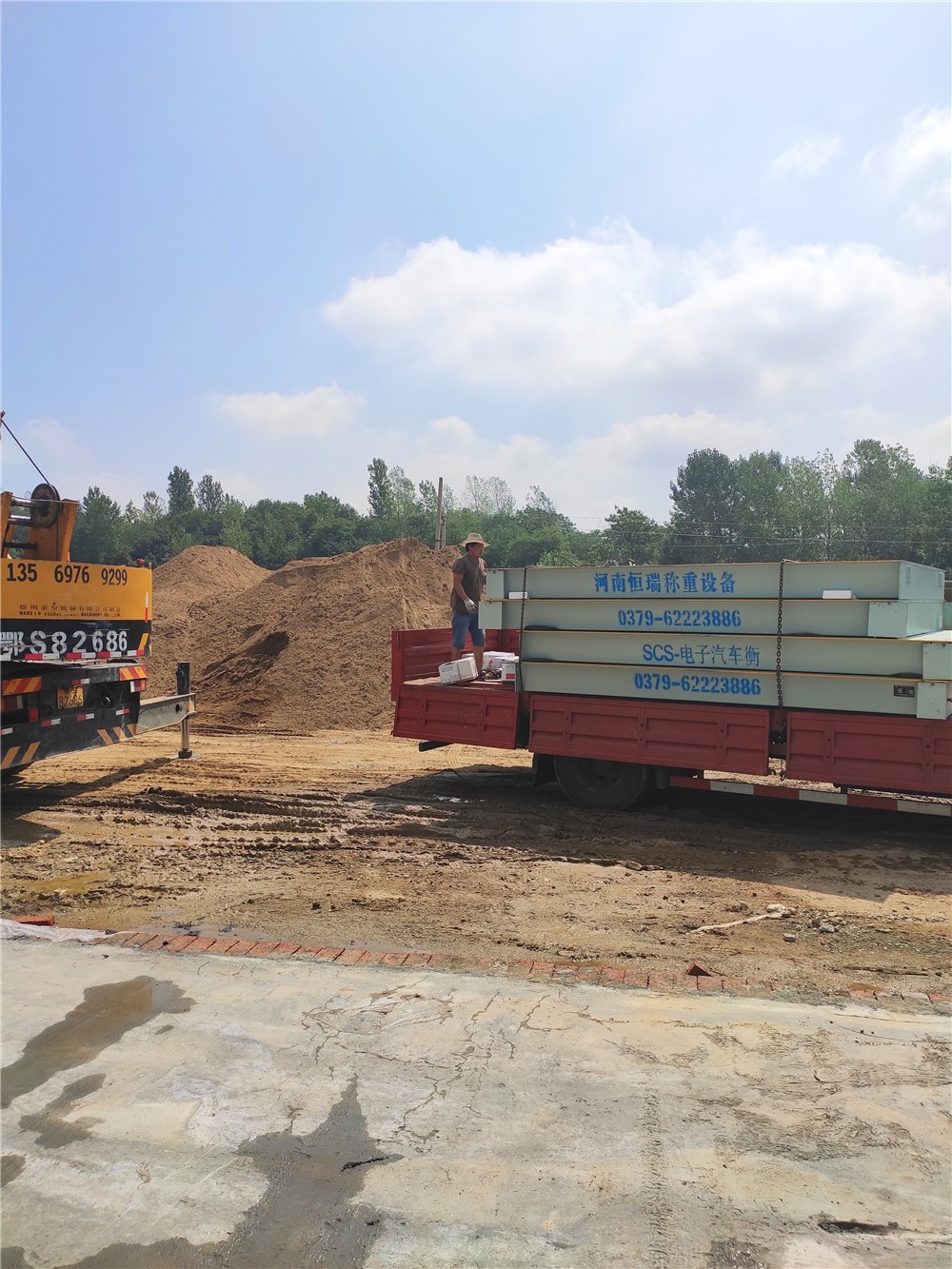 采購(gòu)背景:信陽(yáng)市浉河區(qū)政山河沙石料廠主要從事河沙的開(kāi)采及銷售,河沙出廠的半掛車輛需要大型計(jì)量器具,經(jīng)過(guò)多次溝通,該沙廠采購(gòu)了中原恒瑞16m定額150噸電子地磅。