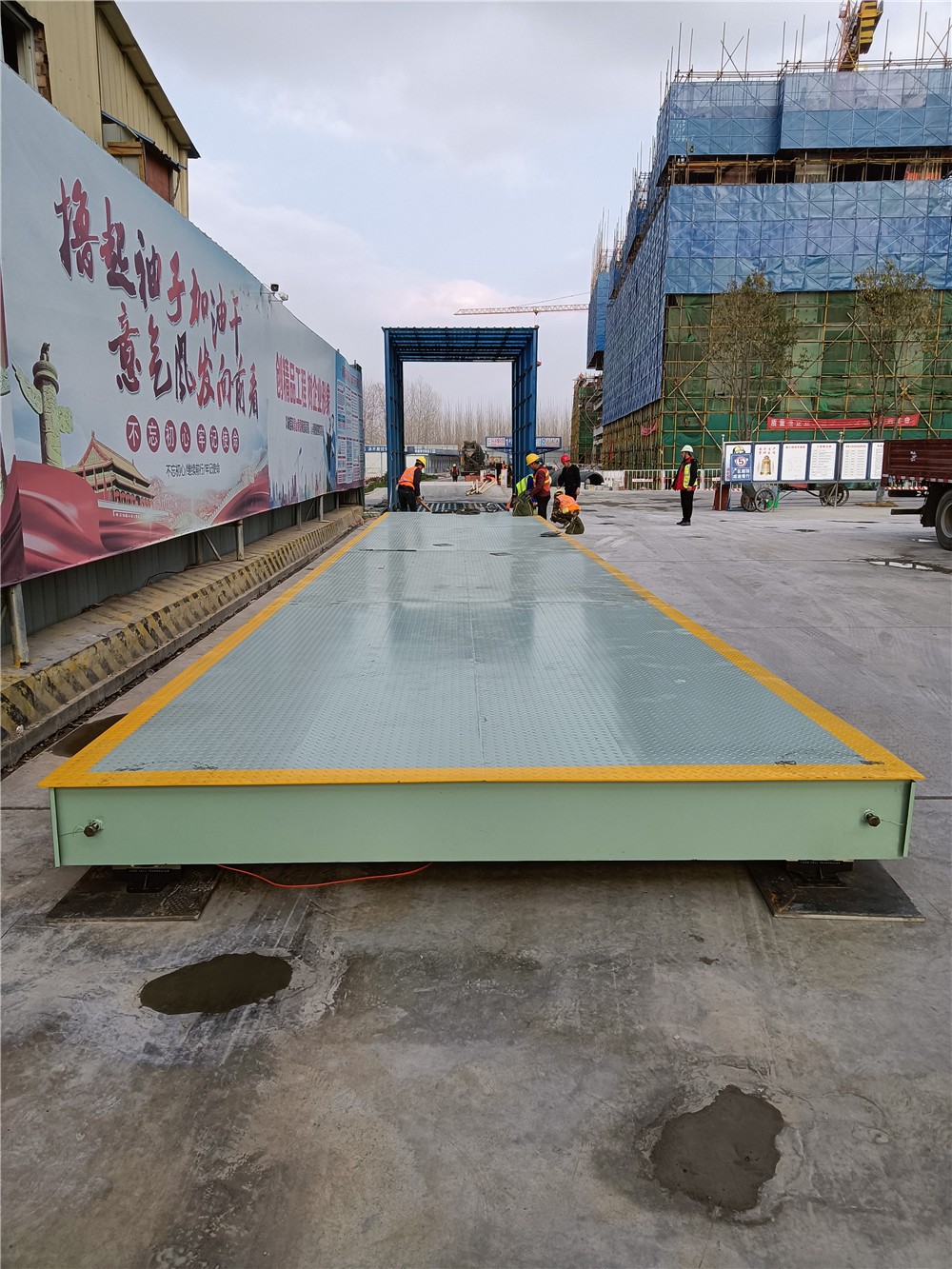 采購背景:南陽建工集團(tuán)主營房屋建筑工程施工總承包壹級;地基與基礎(chǔ)工程承包叁級等。此次承建建業(yè)·尉州上院項(xiàng)目,為方便項(xiàng)目拌和站內(nèi)大量建筑材料進(jìn)出稱重計(jì)量, 訂購了中原恒瑞地磅廠3x16m定額100電子汽車衡,現(xiàn)汽車衡已安裝完成并投入使用。
