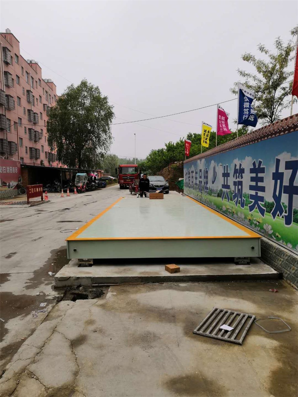 信陽固始龍澤佳園項目3x9m SCS-100T數(shù)字地磅施工案例